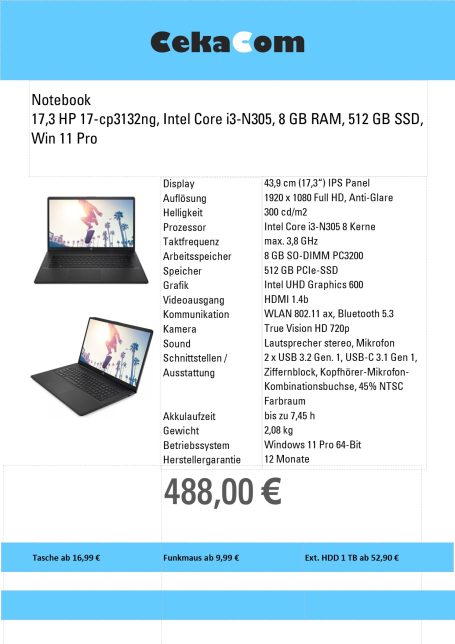 Hier haben wir eine Auswahl Notebooks. Für weitere Modelle sprechen Sie uns gerne an.