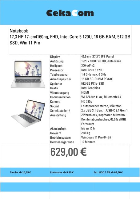 Hier haben wir eine Auswahl Notebooks. Für weitere Modelle sprechen Sie uns gerne an.