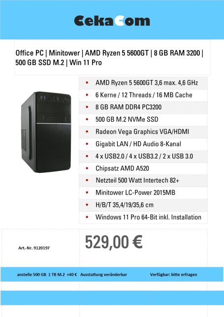 Angebote für PC´s, auch frei nach Ihren Wünschen.